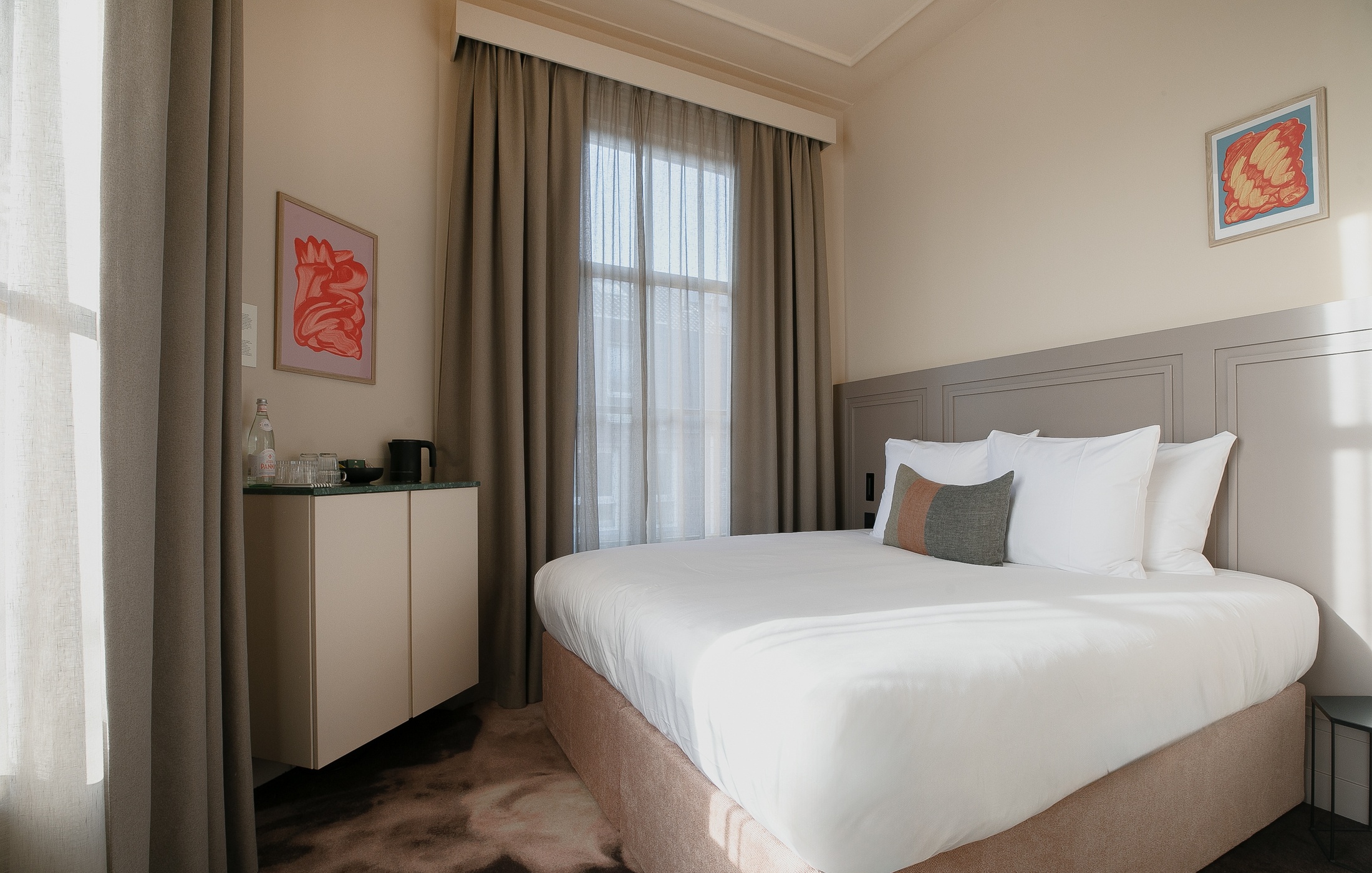 Bitte beachten Sie: Dieses Zimmer ist nur über eine Treppe erreichbar und nicht mit dem Aufzug zugänglich. Außerdem verfügen diese Zimmer nicht über Fernseher, damit das Design und die Fenster optimal zur Geltung kommen.
