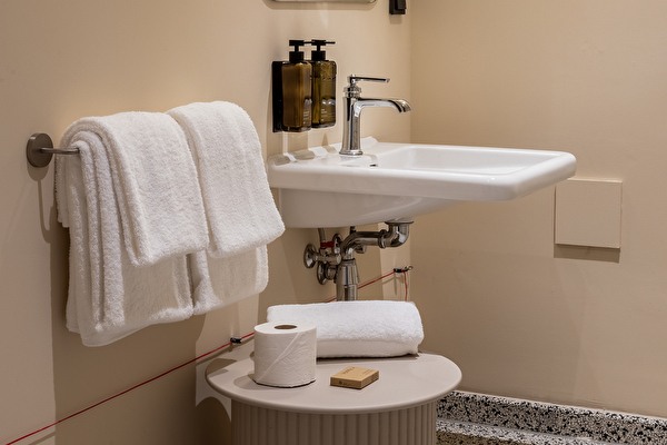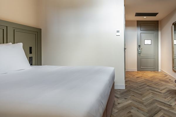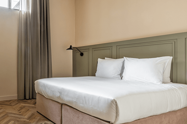 Enjoy comfort and style in this 23 m² room featuring high ceilings and a generous king-size bed. The modern bathroom is equipped with a walk-in rain shower and luxurious Ajen products for a moment of relaxation. The room is fully wheelchair accessible and thoughtfully designed for ease of use, without compromising on atmosphere or design.